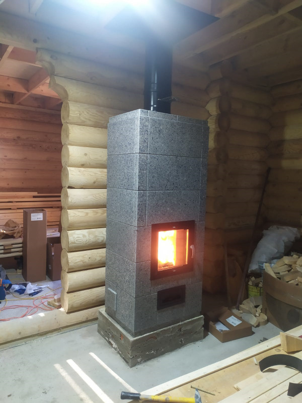Камин "Вирма" с нижним подключением, смонтирован в п.Лучевое. -